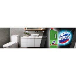 Domestos Pine Fresh je víc než jen čisticí prostředek - je zárukou hygienické čistoty a svěžesti borového lesa, která vyvstane po každém použití.