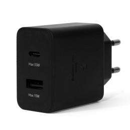 Szybko i bezpiecznie ładuj swoje urządzenia dzięki oryginalnej ładowarce Samsung 35W PD. Adapter sieciowy wyposażony jest w dwa porty – USB-C oraz USB-A, co pozwala na jednoczesne ładowanie dwóch urządzeń. Dzięki technologii Power Delivery (PD) oraz Adaptive Fast Charging (AFC) zapewnia maksymalną wydajność i krótszy czas ładowania zarówno dla smartfonów Samsung, jak i innych urządzeń obsługujących szybkie ładowanie.