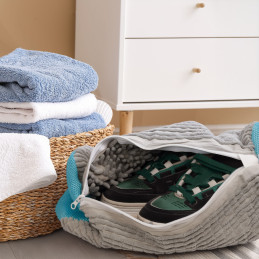 Praktyczne i bezpieczne rozwiązanie do prania butów w pralce, które pozwala zachować ich kształt, chroni bęben pralki oraz inne prane rzeczy.